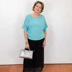 This ankle length skirt is flowy and chic. Tuck in any TINA Stephens silk blouse to give the appearance of a dress! Fold over the waistband for extra support and a sleek finish. You can wear her both high or low on the hips depending on the length you desire. Made in Italy.