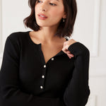 Our Henley Ribbed Crewneck Sweater is a timeless essential designed for everyday wear. Crafted in a soft rib knit that offers stretch and texture, it features a classic crew neckline, long set-in sleeves, and a five-button placket for versatile styling. The slim fit and ribbed finish create a flattering silhouette, making it a perfect layering piece or chic stand-alone top.