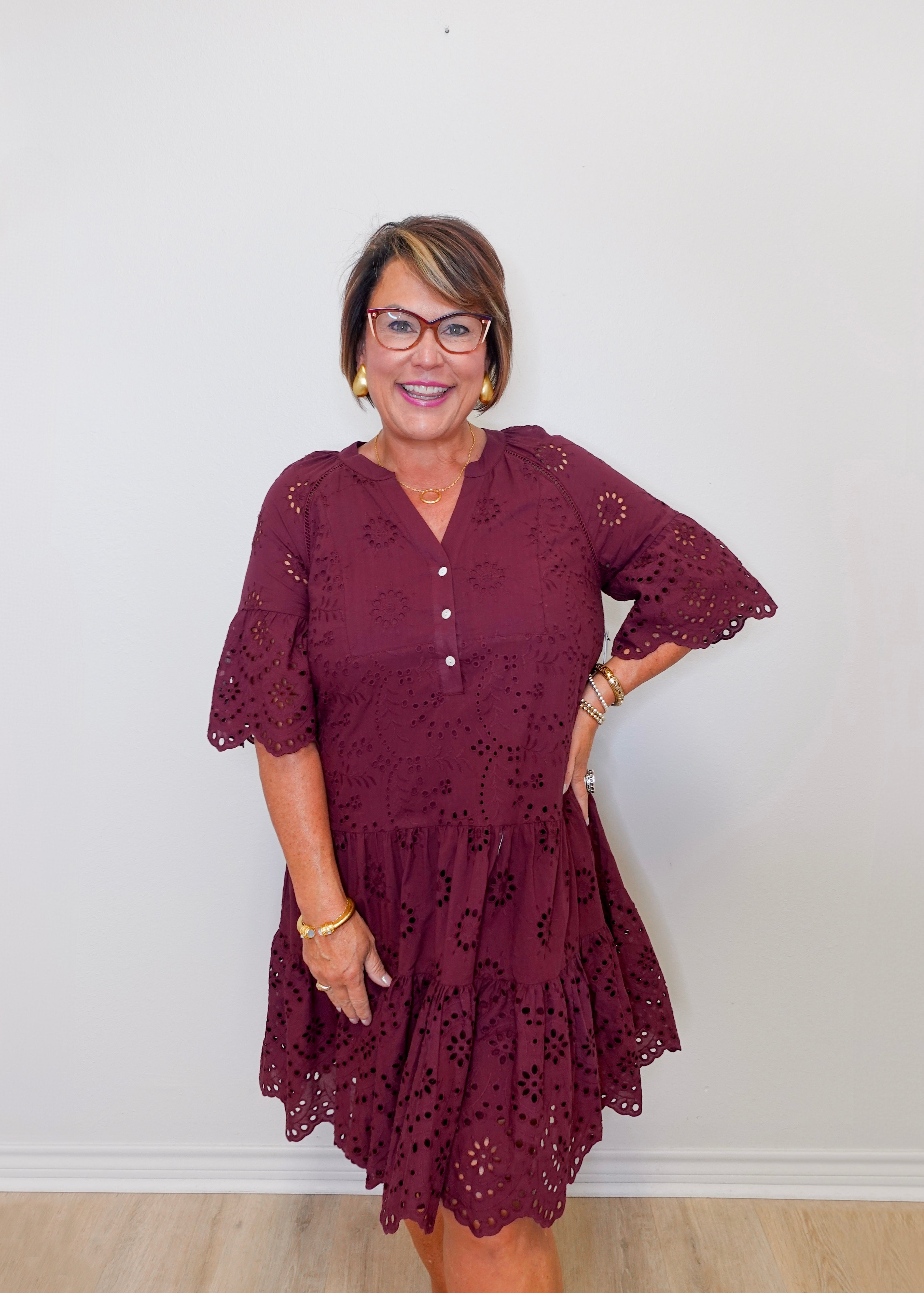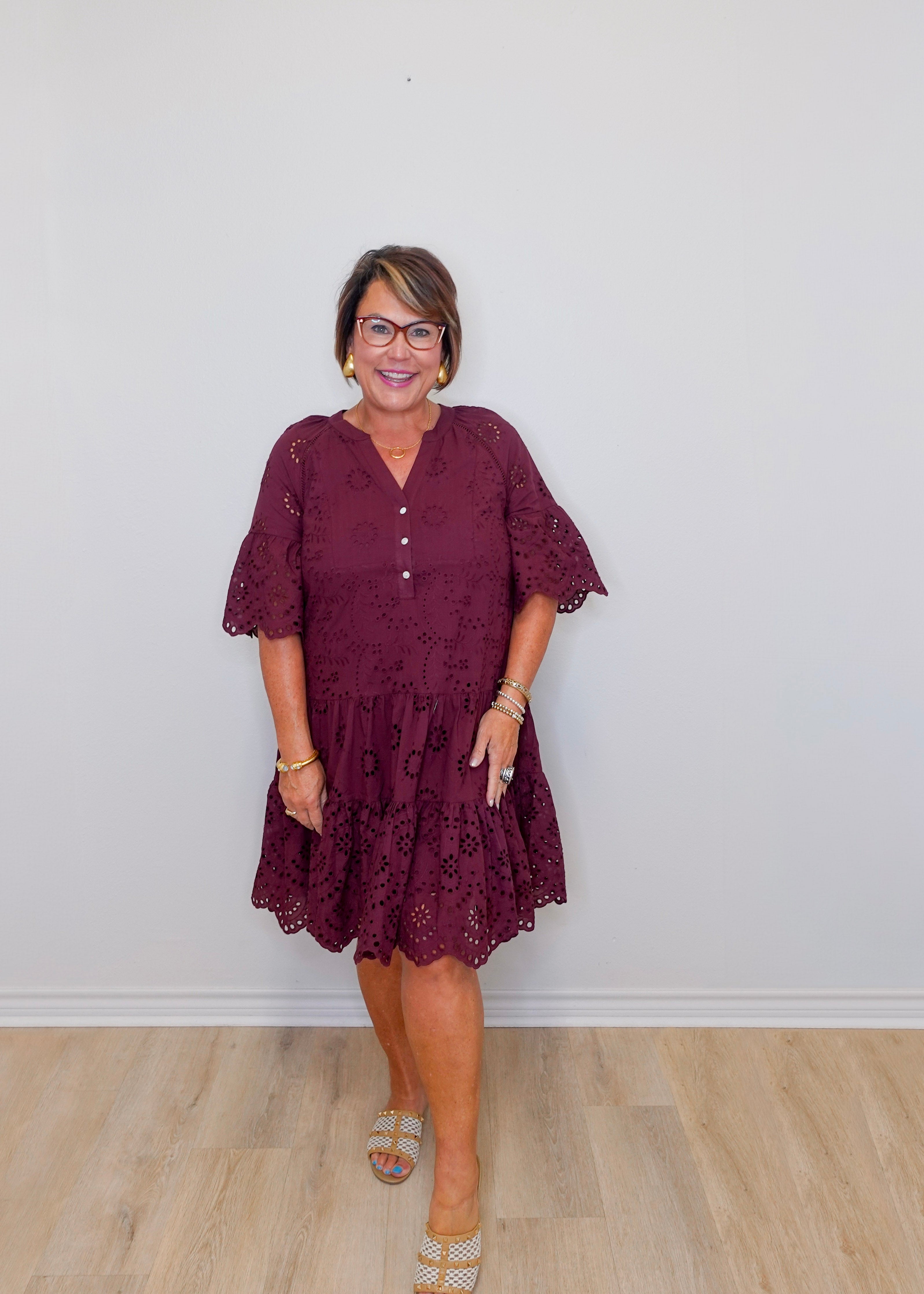 Mixed Pattern Eyelet Dress