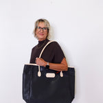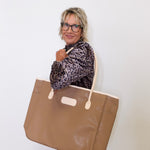 Our largest zippered tote is a winner for the woman that needs it all, all the time. It has a zippered closure for security or left open for easy access. Features exterior pockets on either side, two open interior pockets, and one additional zippered interior pocket.