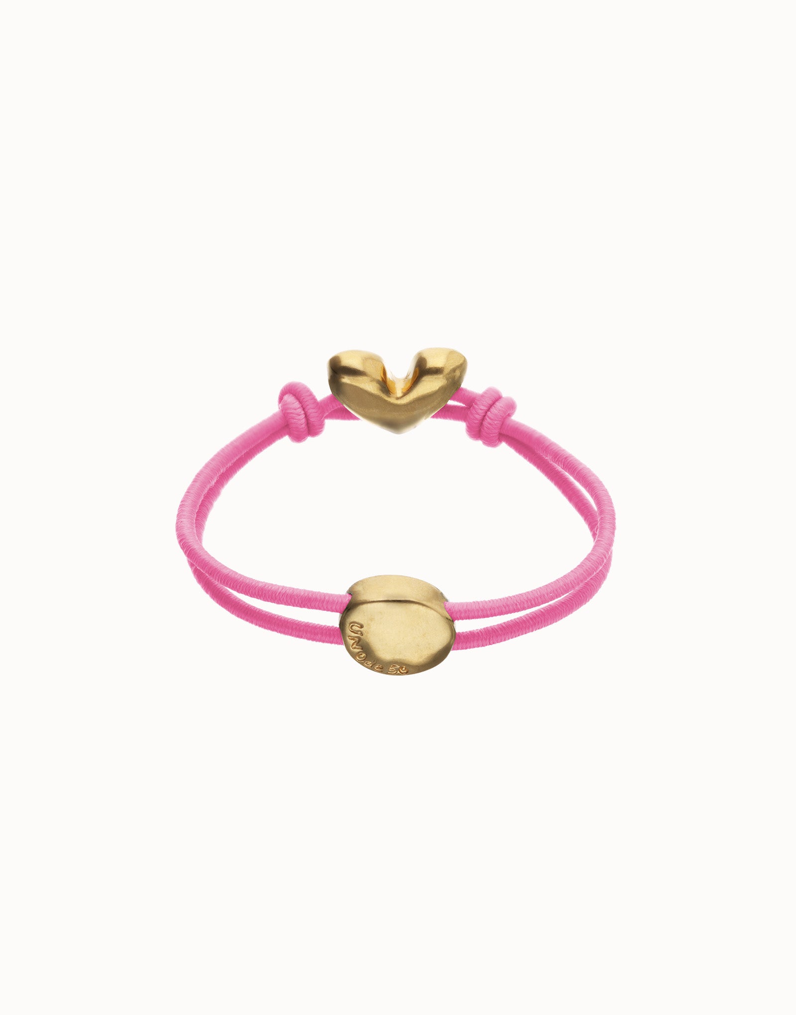 Pink elastic thread bracelet with heart.When something inside you beats strongly, there is only one way to listen to it: let go. The Beat Collection is a celebration of letting go of the reins and letting your heart lead the way. A handmade heart, imperfect, but real. Because the result of living this way is a heart sculpted with your own hands.