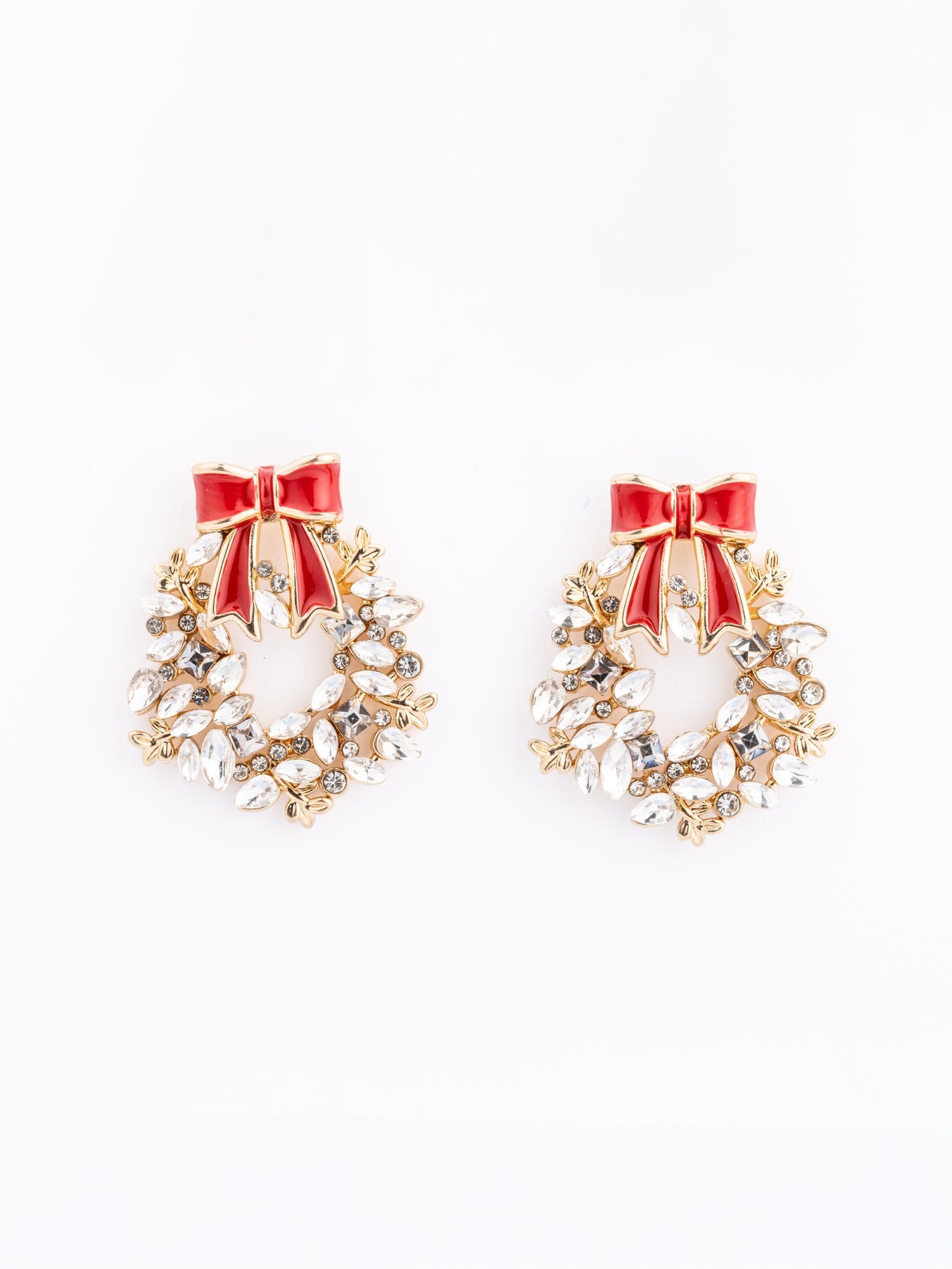 Add a touch of festive sparkle to your holiday look with these charming wreath earrings. Adorned with shimmering crystals and finished with a bright red enamel bow, they're the perfect blend of elegance and cheer. Lightweight and eye-catching - ideal for parties, gatherings, or gifting.