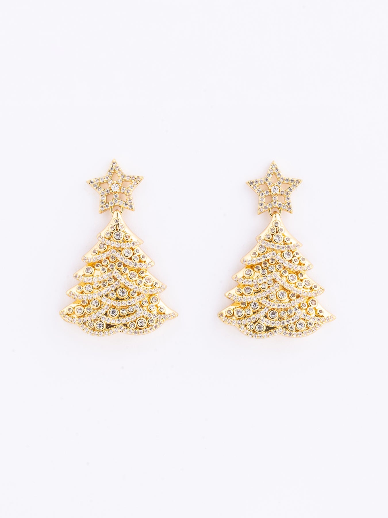 Shine bright this season with these dazzling Gold Christmas Tree Earrings, kissed with shimmering crystals that catch every twinkle of holiday light. The elegant gold finish and sparkling accents make them the perfect mix of festive and fabulous — dress them up for a holiday party or wear them to add a little merry magic to your everyday style.