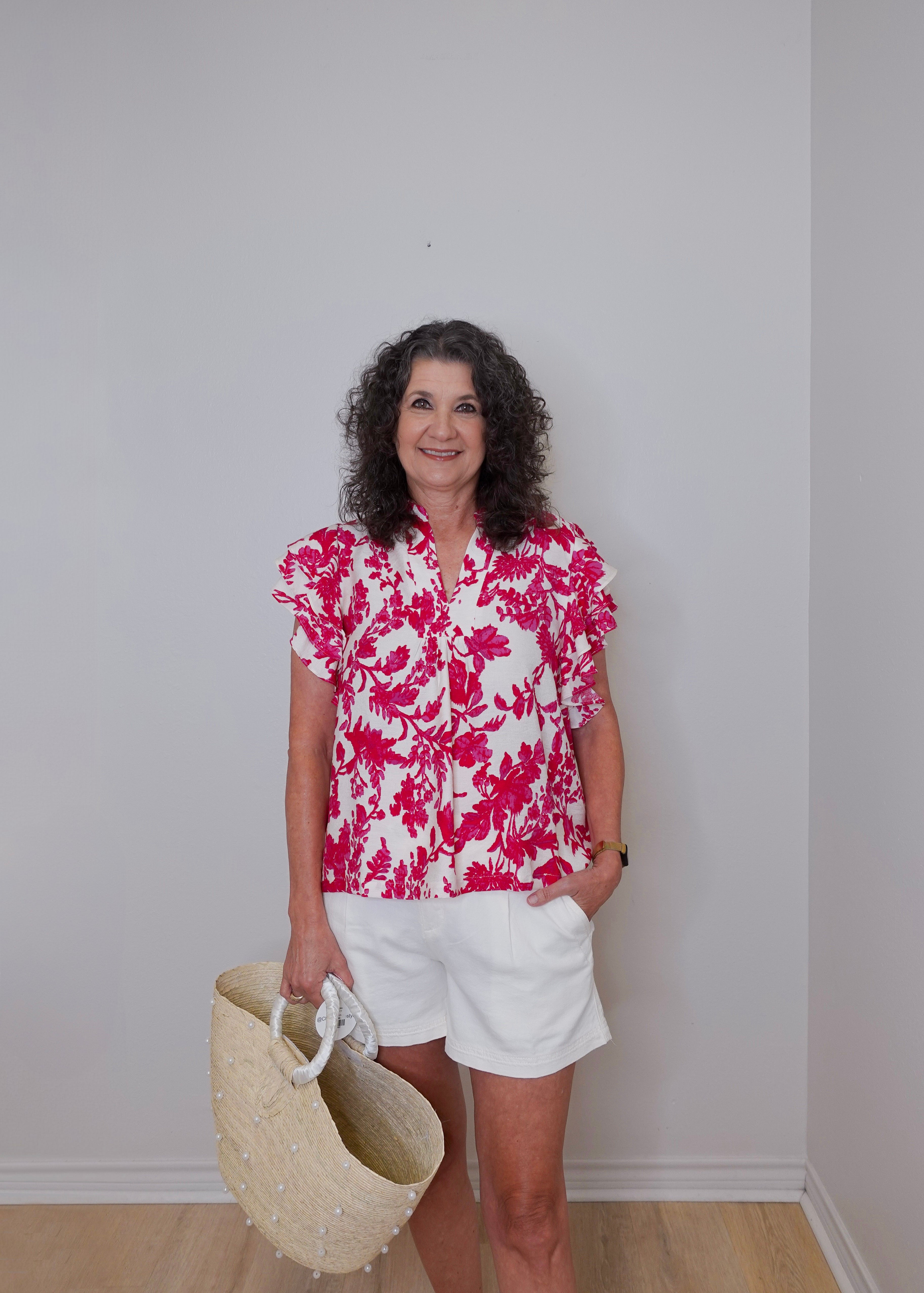Floral V-Neck Buttoned Top