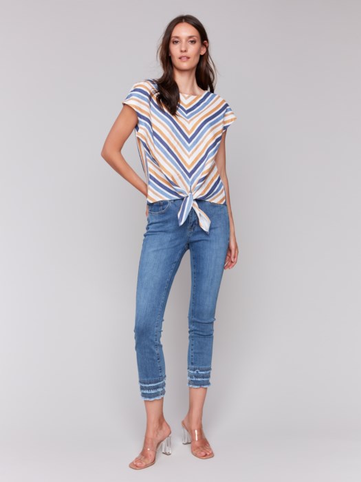 Yarn Dye Linen Cap Sleeve Top