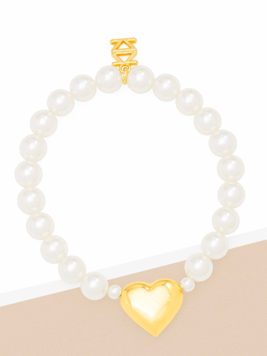 HEART CHARM PEARL STRETCH BRACELET