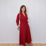 Introducing the Joseph Ribkoff dress, where elegance meets versatility. This midi-length wrap dress features a flattering V-neckline and a belted waist, perfect for both formal and casual occasions. The plain pattern and feminine style, complemented by 3/4 straight sleeves, offer a sophisticated yet comfortable look. Ideal for any wardrobe, this dress promises style and grace.