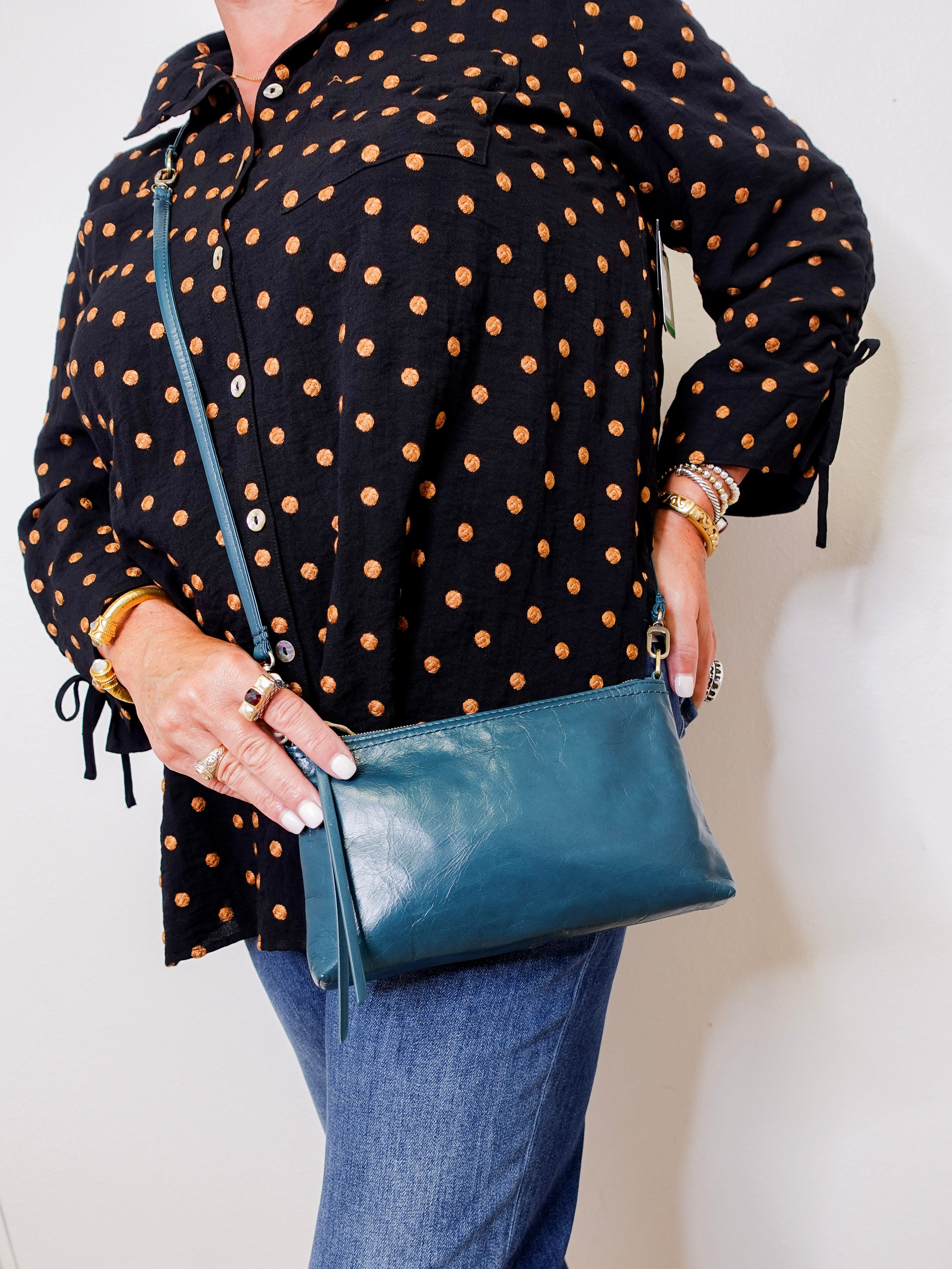 An iconic and convertible HOBO style that can be worn three ways: crossbody, baguette bag and wristlet.