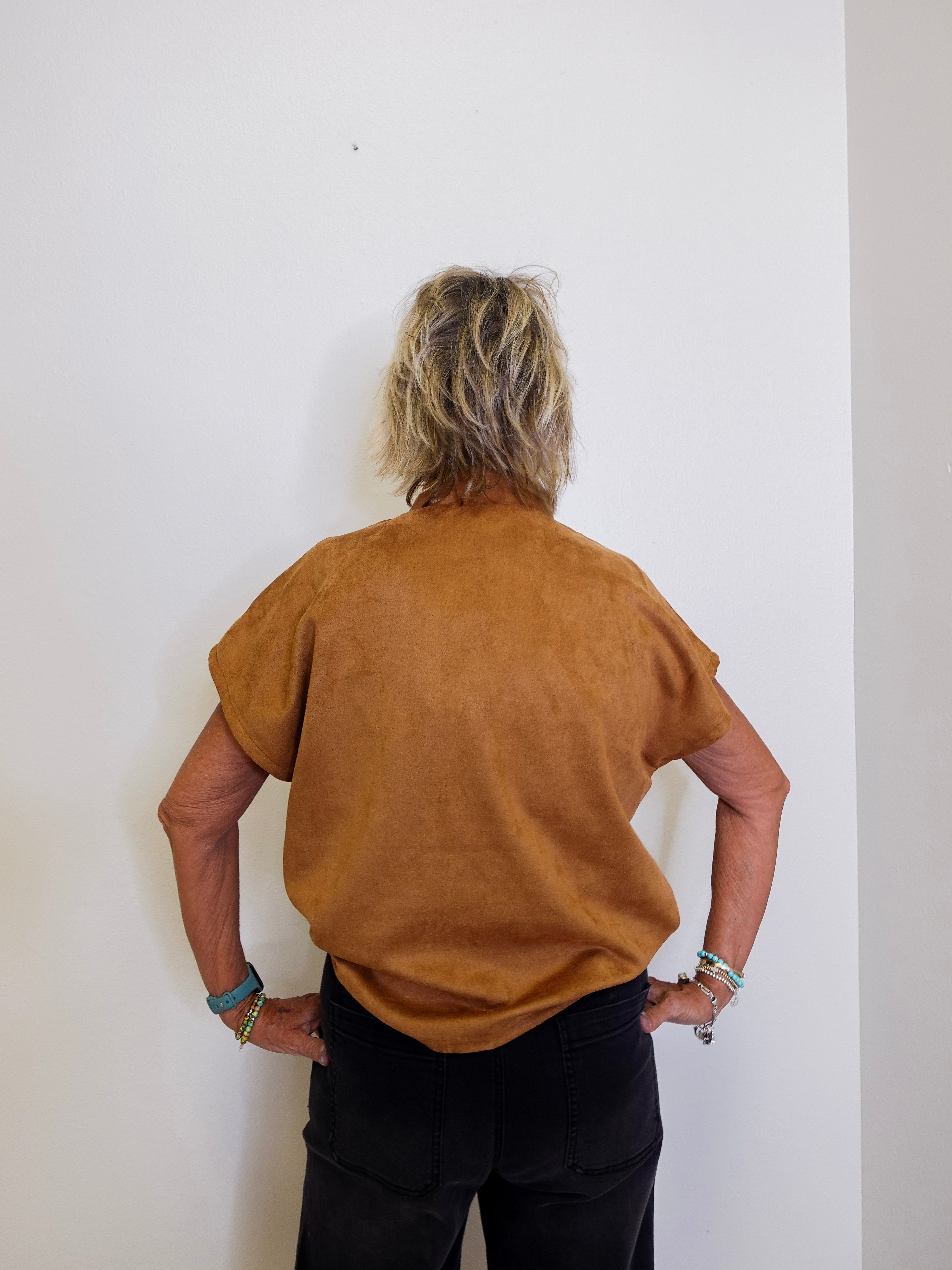 Short Sleeve Suede Top