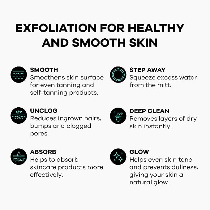 Smoothes skin surface for even tanning and self-tanning products.