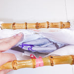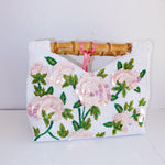 Finished with natural bamboo handles, it strikes that perfect balance between classic charm and modern style—dressy enough for weddings and showers, yet effortless for brunches, luncheons, and date nights.