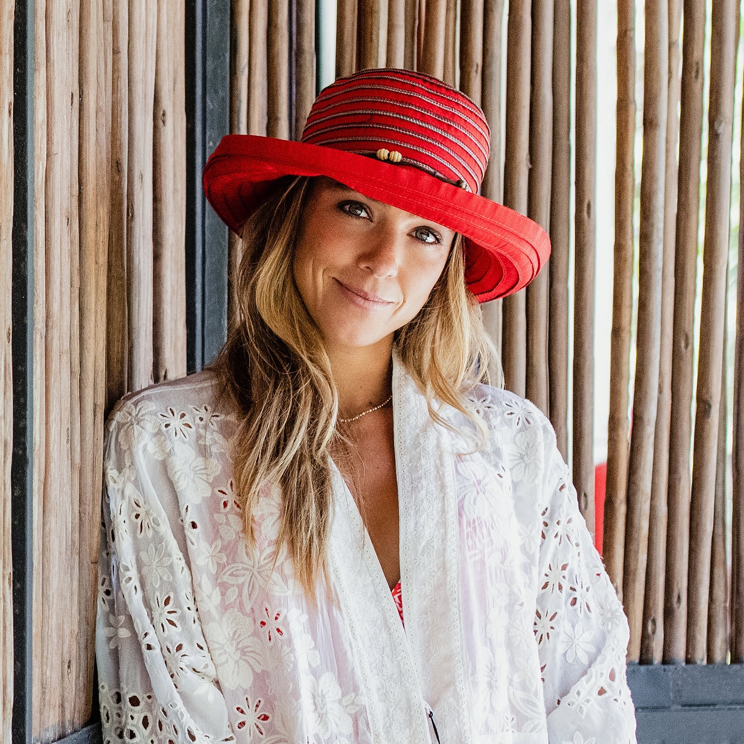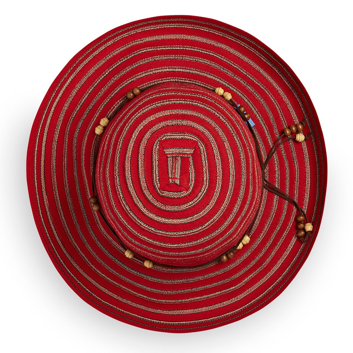 Packable and adjustable, the women's Breton sun hat is great for any vacation and provides sun protection for the hottest of days. The contrasting poly-ribbon braids add a pop of color to any outfit. The brim can be worn up or down, and the beaded faux leather tie adds a unique touch.