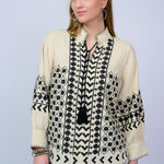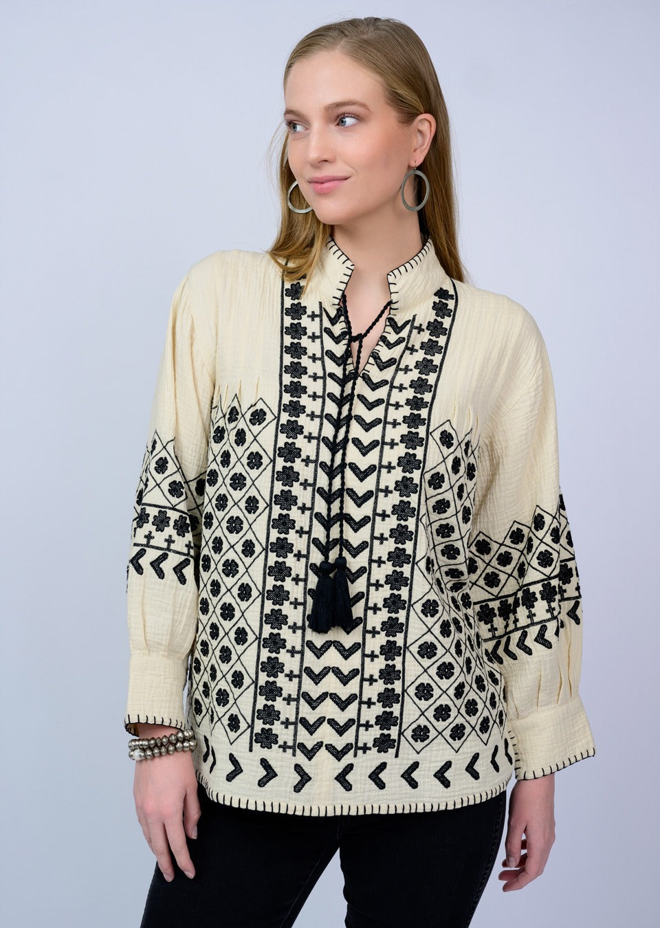 With bold black embroidery and a playful pattern that says "checkmate," this top is effortlessly cool.