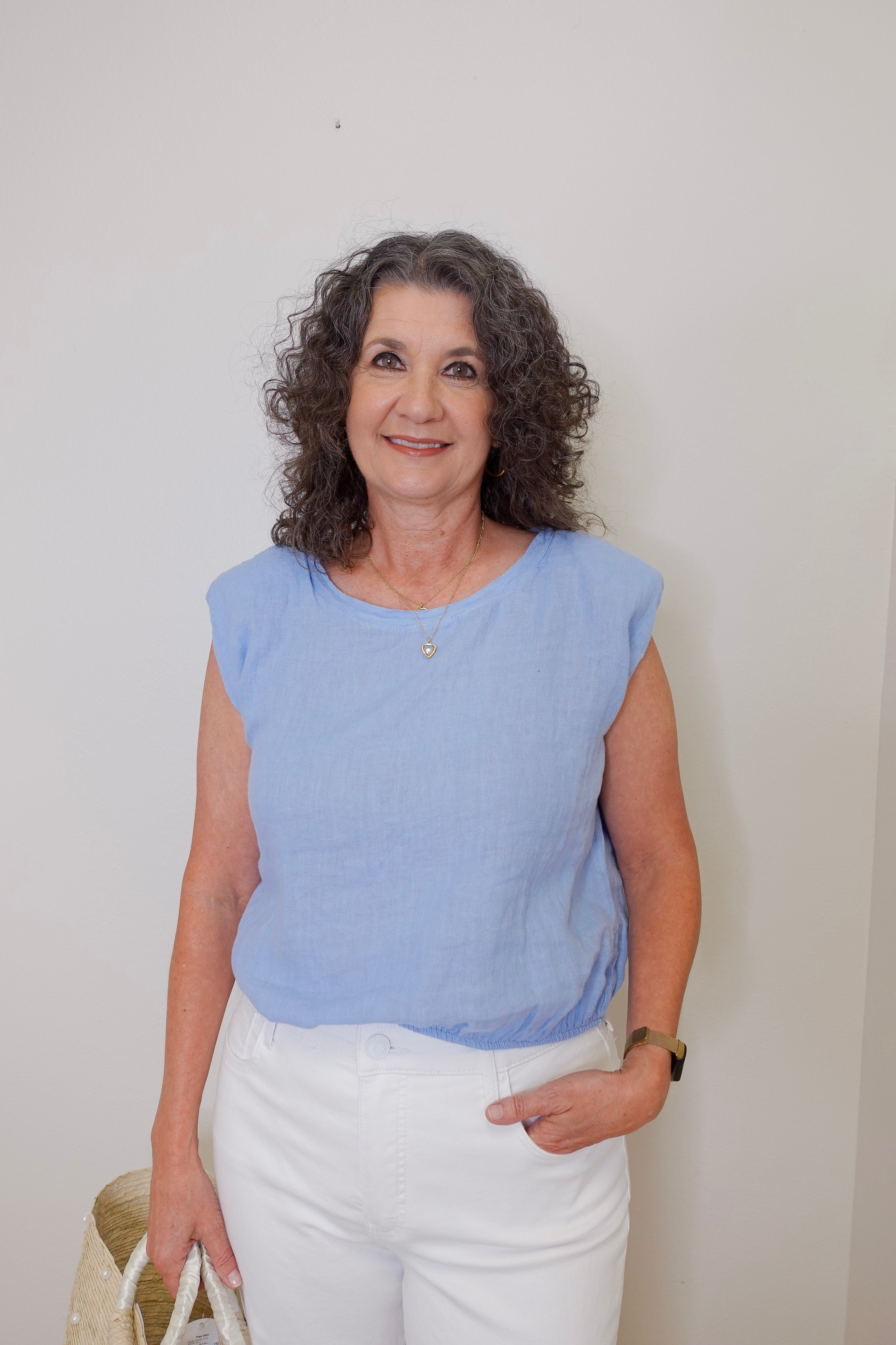 Stay cool and stylish with the Linen Cropped Blouson Top in Sky Blue. Featuring a relaxed blouson design and lightweight linen fabric, this top offers effortless comfort and a breezy, flattering fit. Perfect for warm-weather days, it pairs easily with jeans, shorts, or skirts for a fresh, casual look.