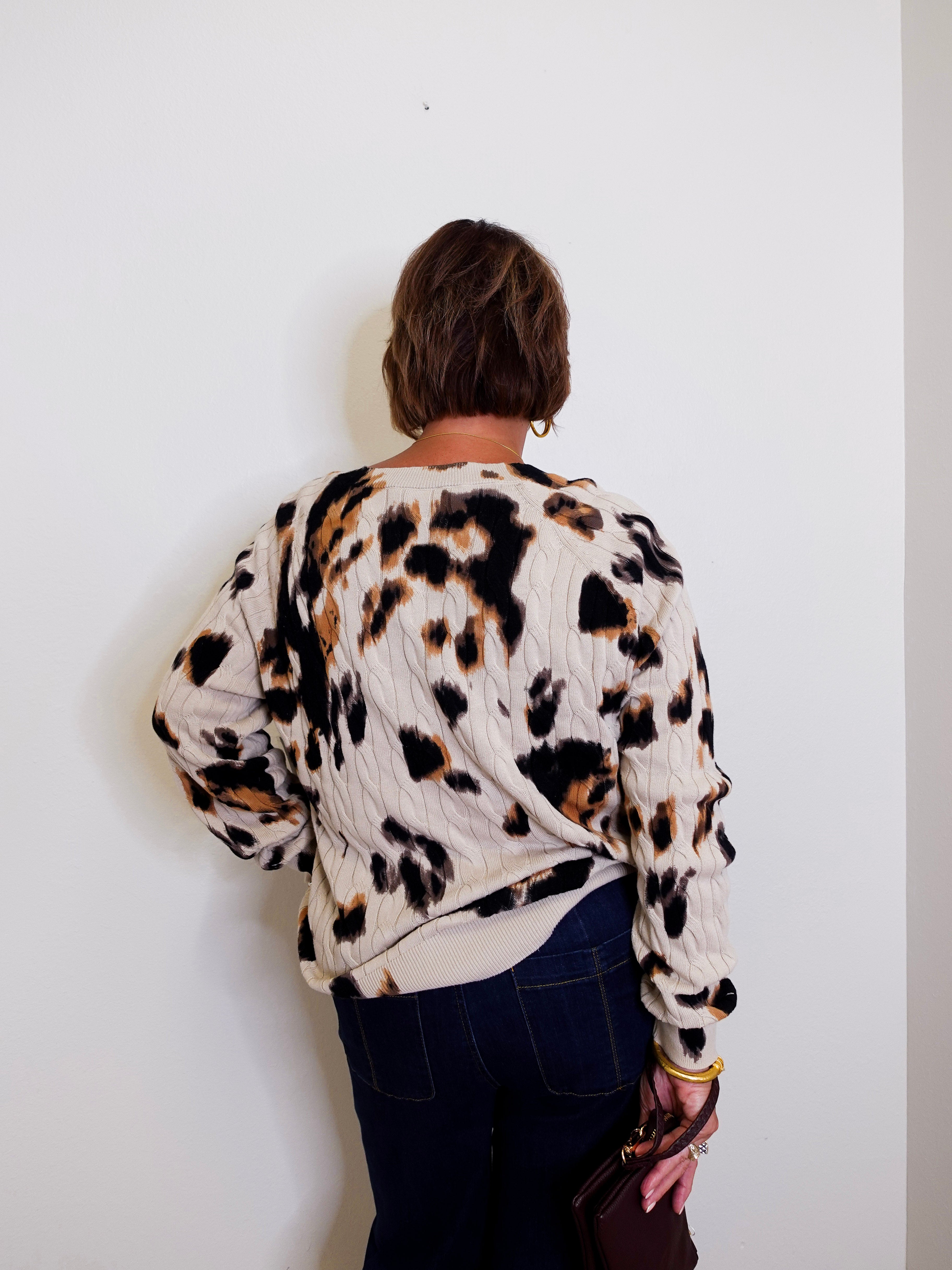 Wrap yourself in effortless warmth and style with this striking sweater, featuring a bold, eye-catching print. Crafted from luxuriously soft cable-knit combed cotton, it delivers the perfect blend of coziness and breathability. Long sleeves offer elegant coverage, while the classic crew neckline completes the look with refined sophistication.
