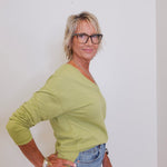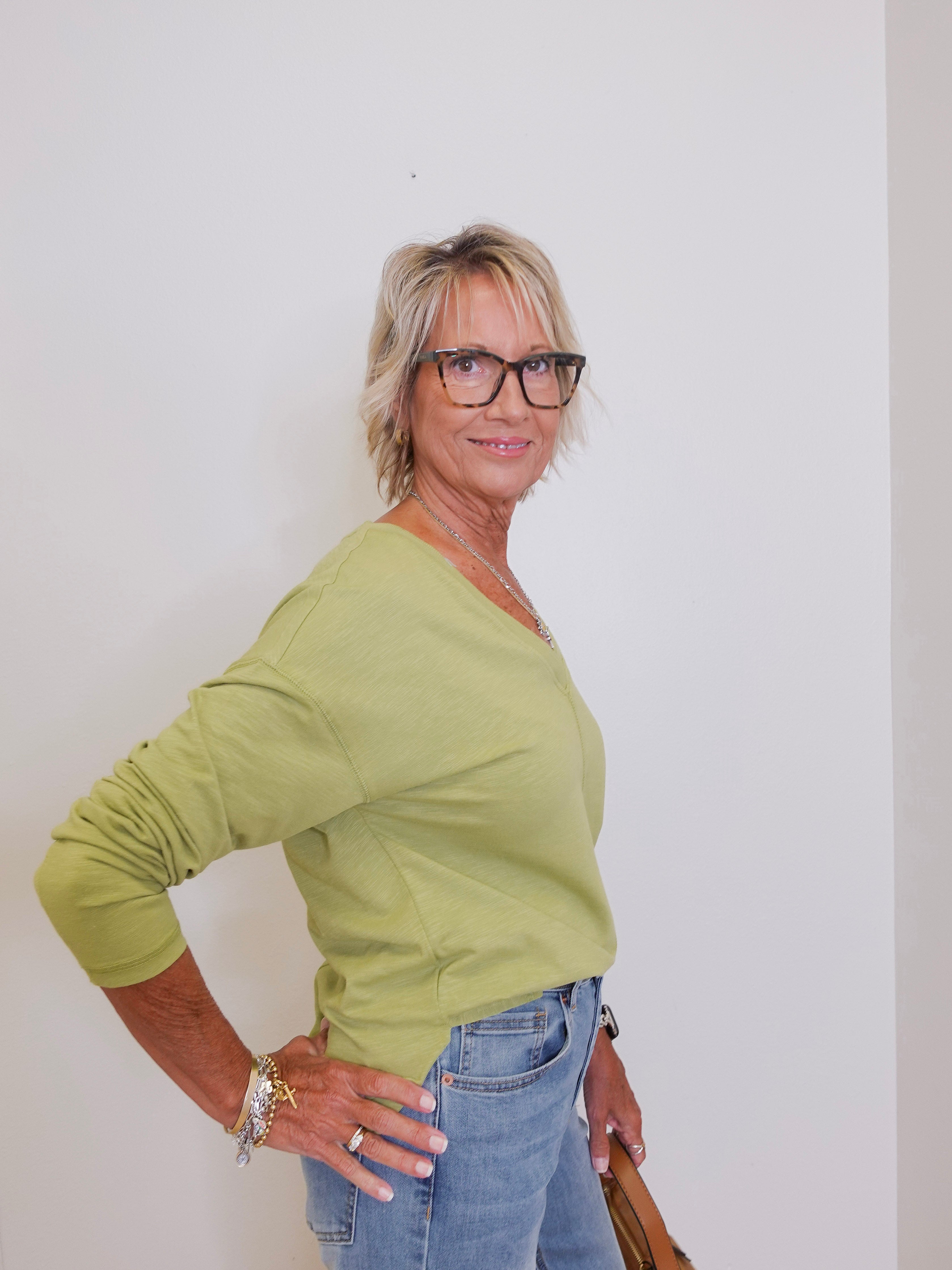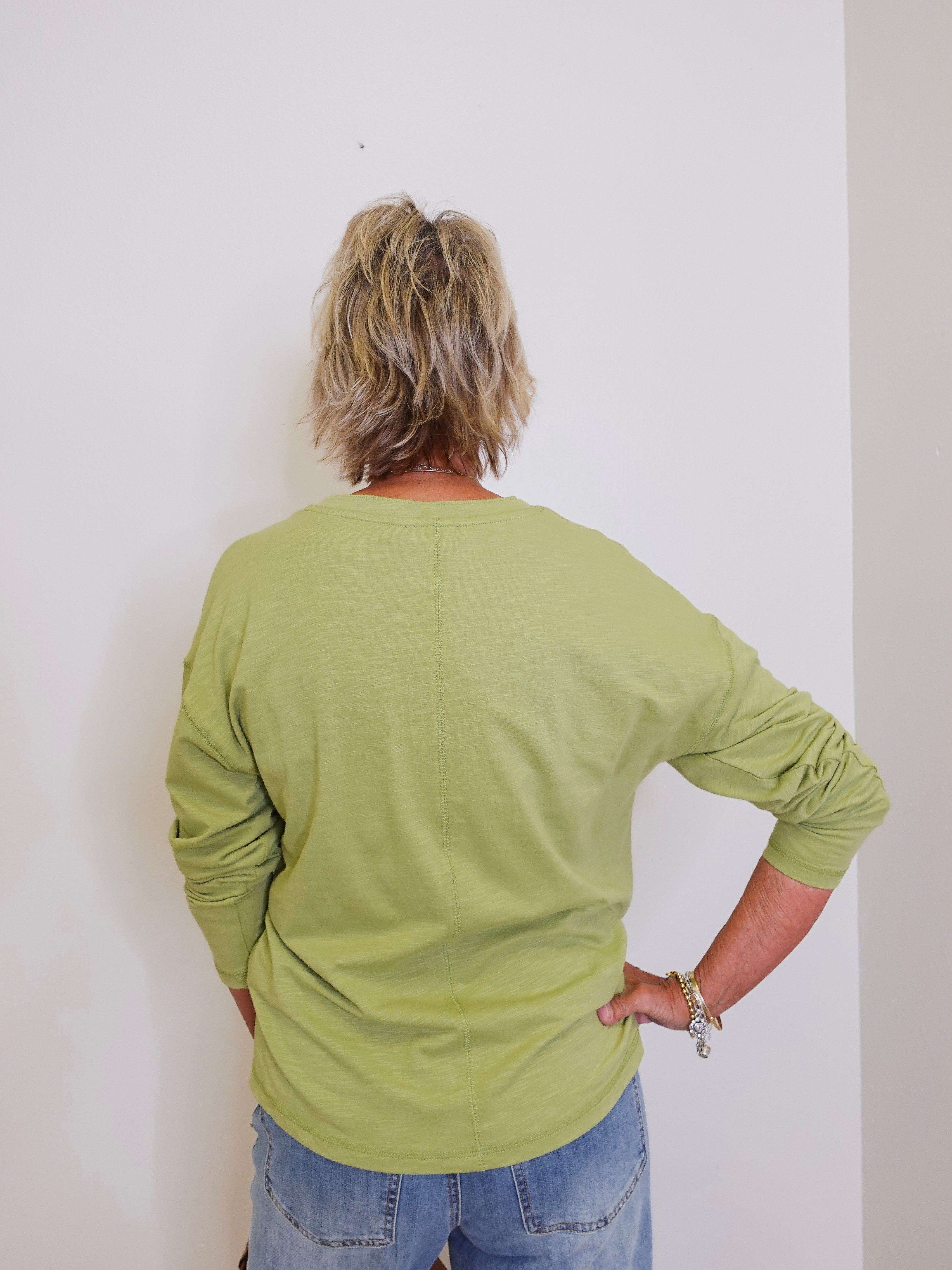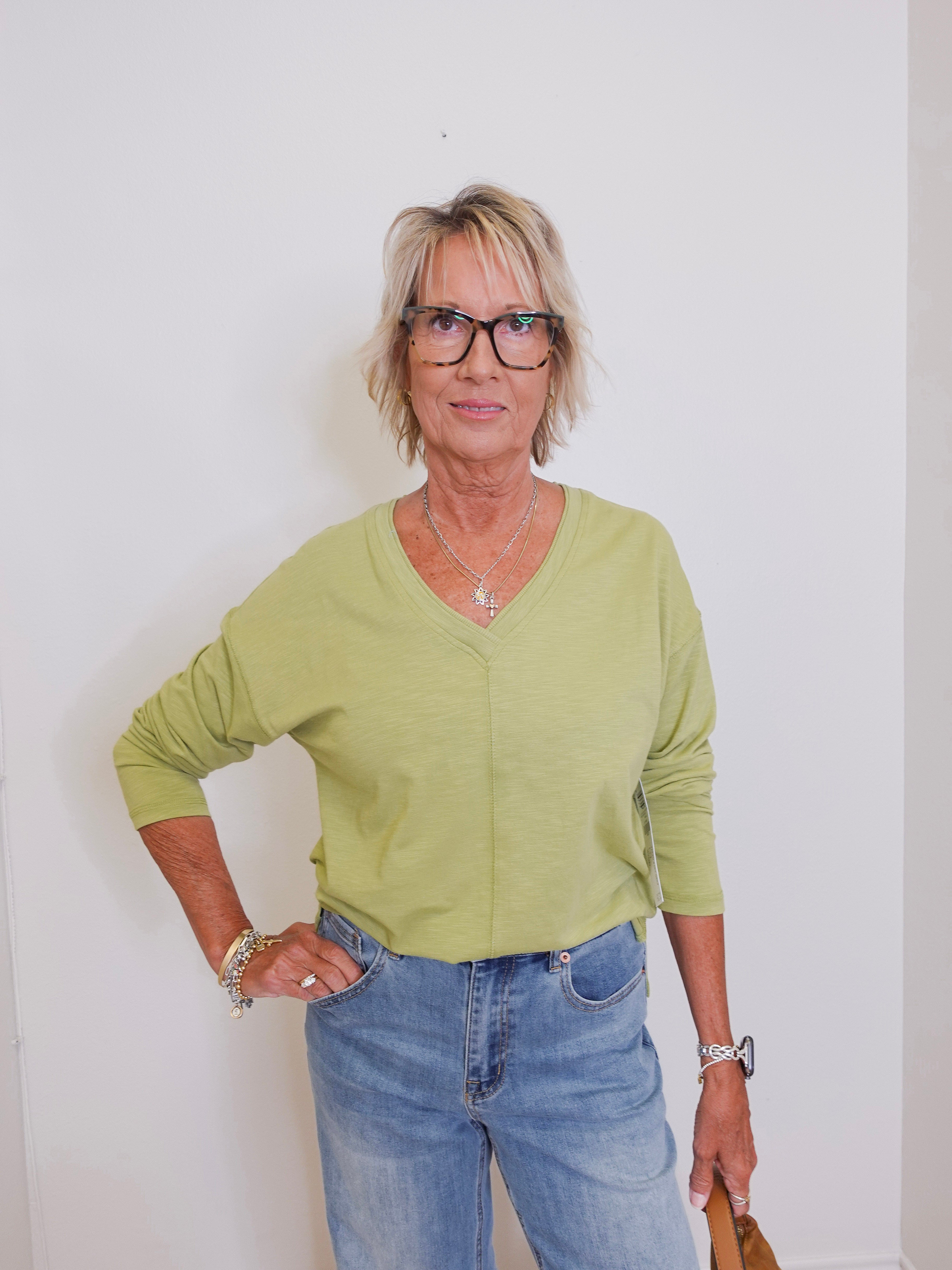 Opt for versatile, everyday style with this long-sleeve top, featuring a flattering V-neckline. The flatlock seams introduce subtle structure to this relaxed piece, while the slub knit fabric offers breathability, softness, and a touch of stretch for all-day comfort.