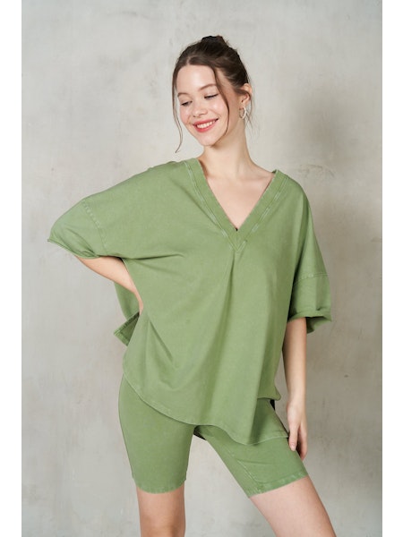 V-Neck Drop Shoulder Boxy T-Shirt
