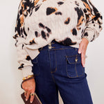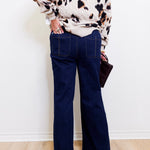 Refine your everyday wardrobe with our fashion statement jeans, designed with a flowing palazzo leg and sophisticated crease detail that enhances your silhouette. The fitted upper flatters your figure, while the zip and horn button closure add timeless elegance. Crafted with stretch denim, they offer luxurious comfort and flexibility, ensuring effortless style from day to night.