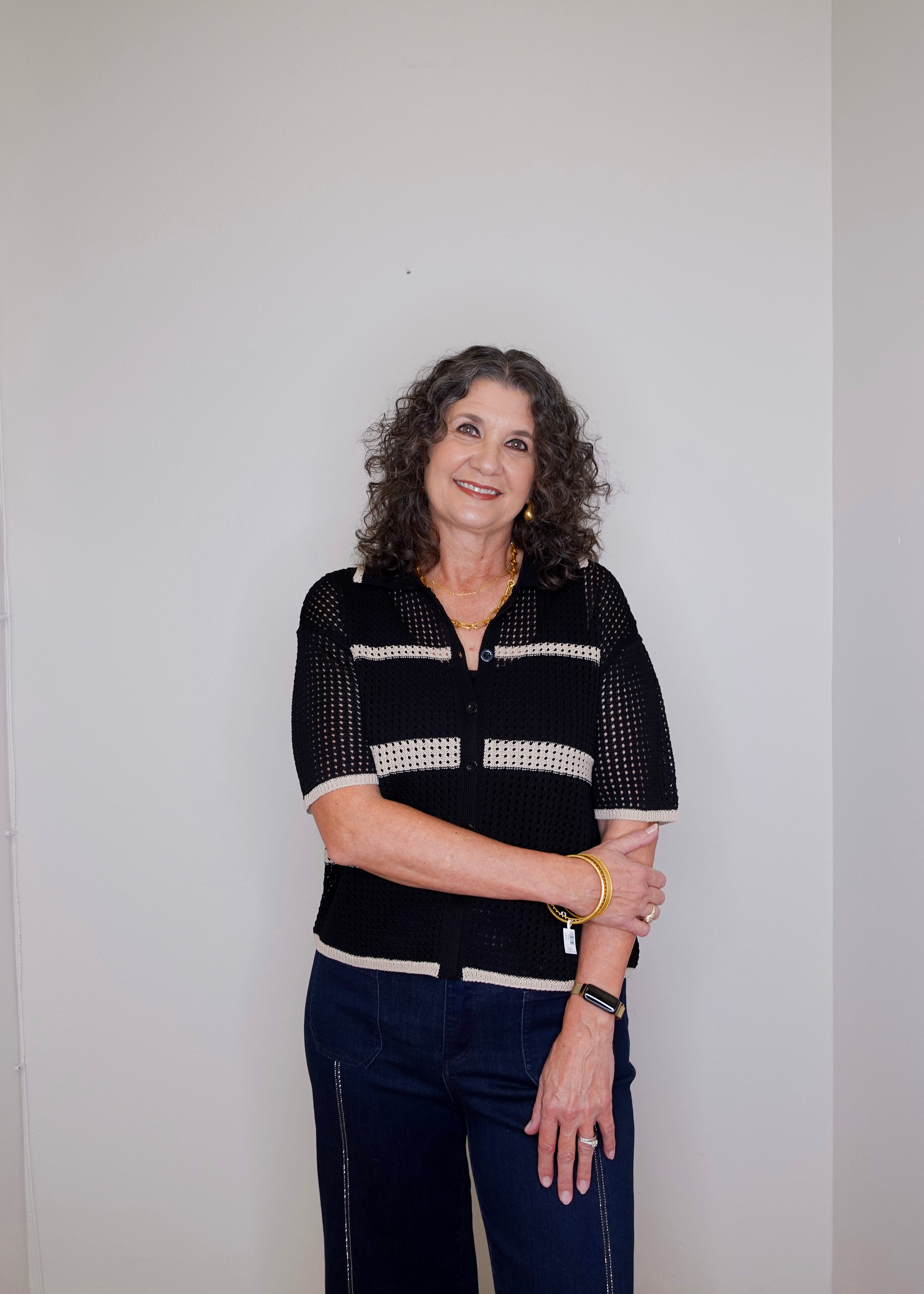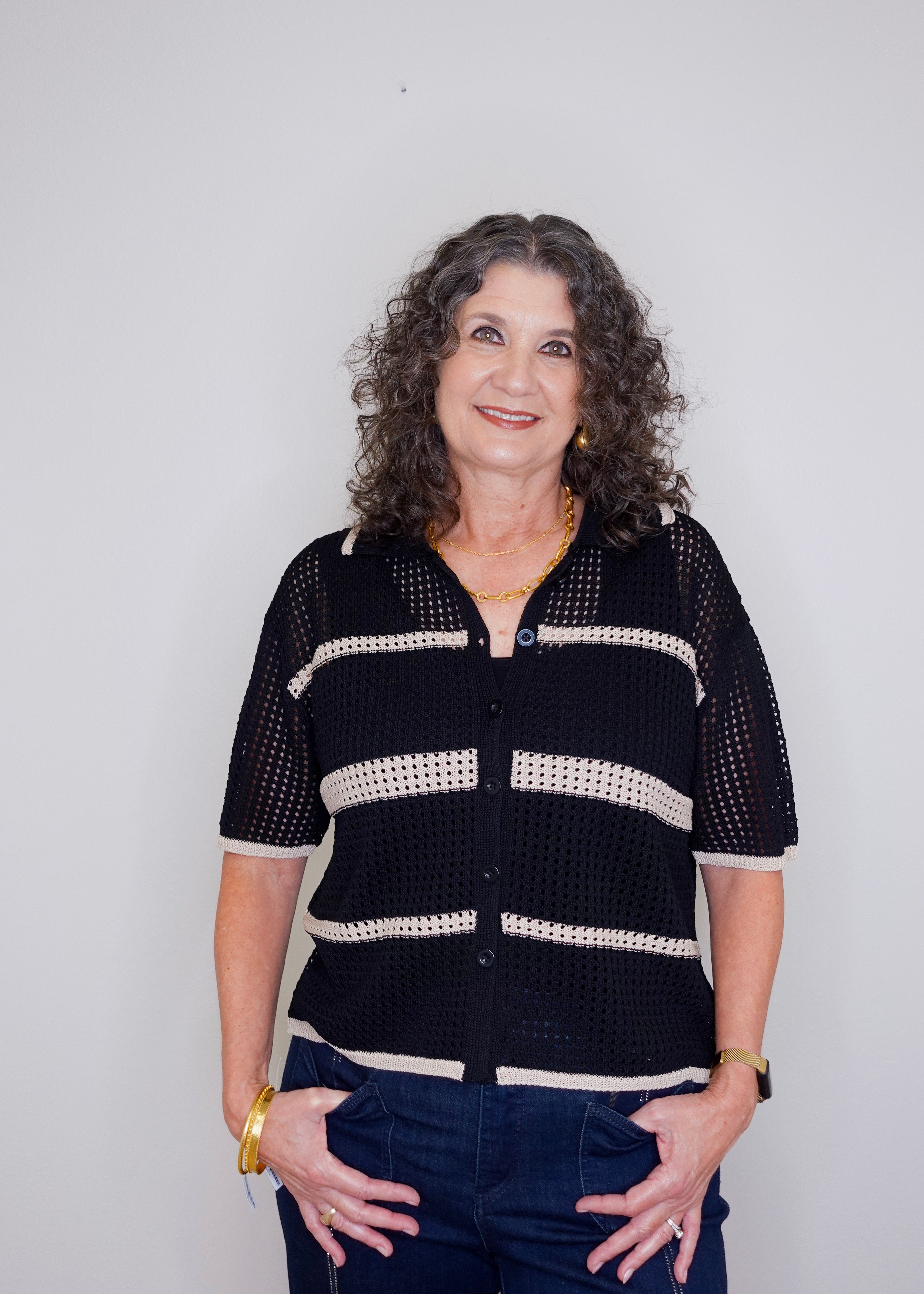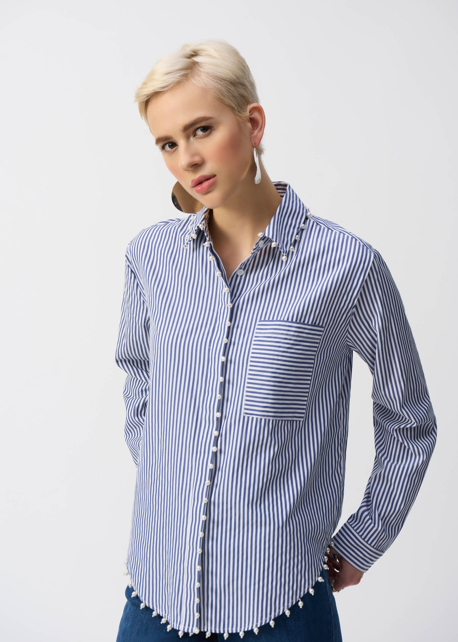 Cropped Striped L/S Button Down Shirt