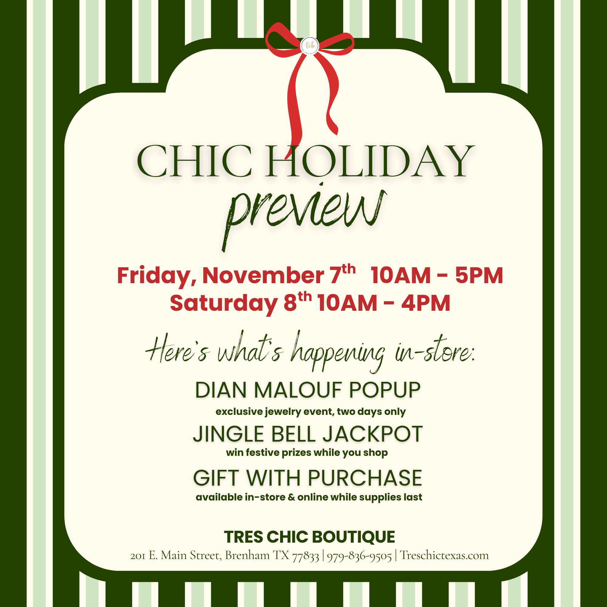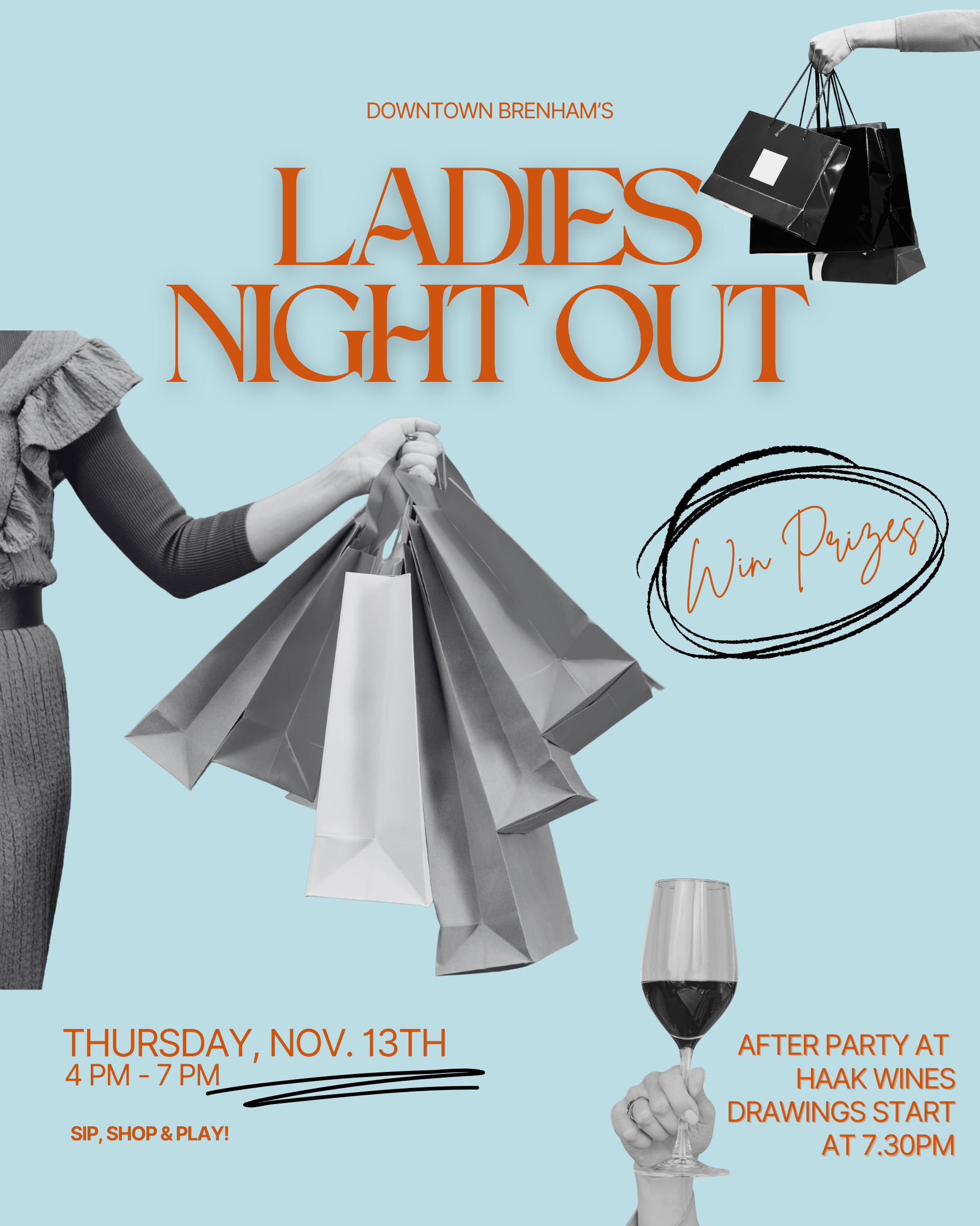 It’s Ladies Night Out in Downtown Brenham! Stop by Tres Chic for apple cider sangria, shopping, and a special offer just for the night.