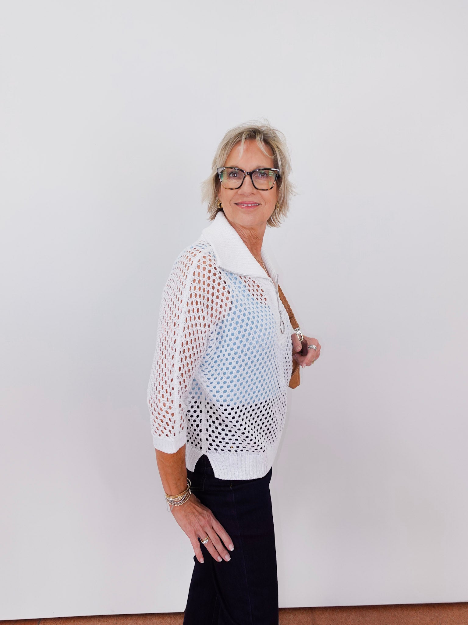 Netted Half Zip Top